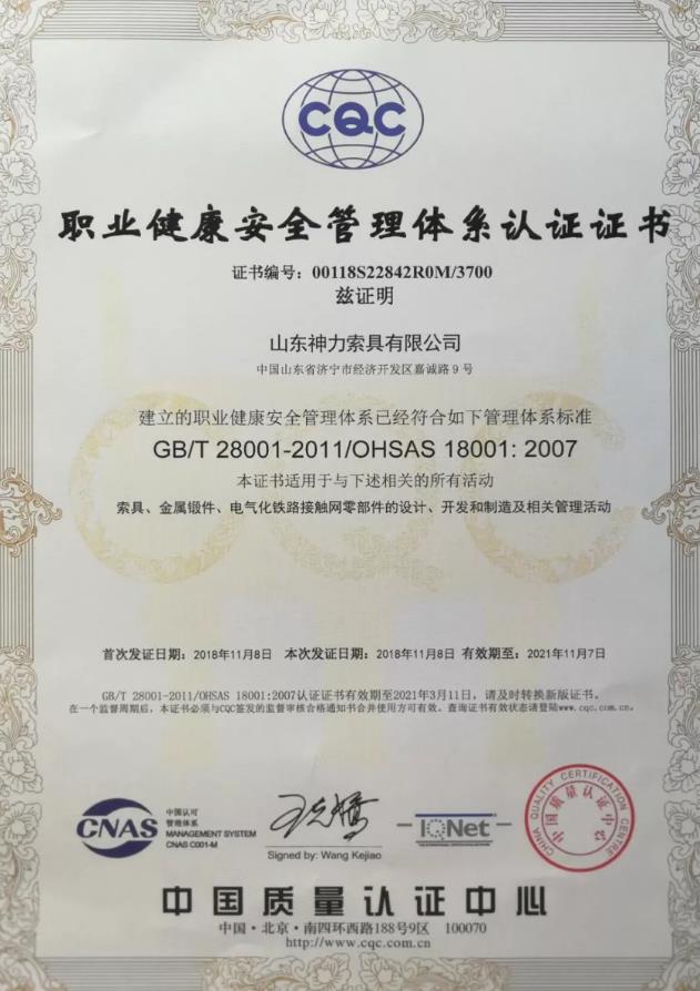 職業(yè)健康安全管理體系證書