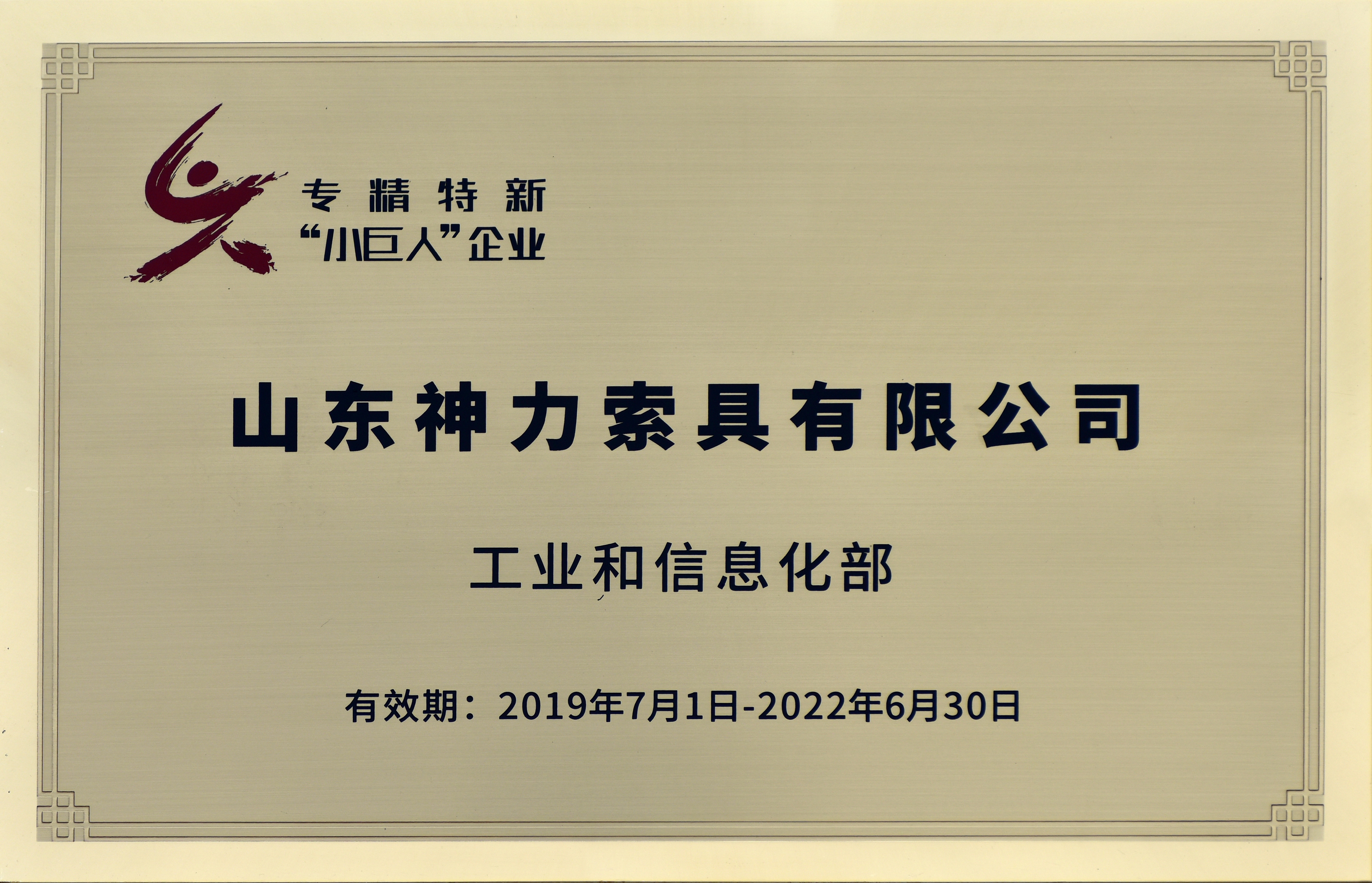 近日,國家工業(yè)和信息化部正式公布第七批及2025年通過復(fù)核的專精特新“小巨人”企業(yè)名單。山東神力索具有限公司憑借在高端索具領(lǐng)域的扎實(shí)積累與持續(xù)創(chuàng)新,成功通過復(fù)核,國家級專精特新“小巨人”企業(yè)資質(zhì)延續(xù)至2028年6月30日。這一殊榮不僅是對神力索具技術(shù)實(shí)力和市場地位的權(quán)威認(rèn)可,更是對企業(yè)堅(jiān)持“專業(yè)化、精細(xì)化、特色化、新穎化”發(fā)展路徑的高度肯定。