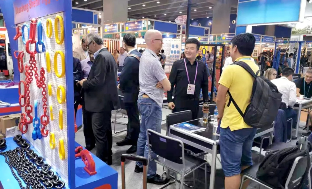 展會期間,展位現(xiàn)場人來人往,前來參觀了解的新老客戶絡(luò)繹不絕,我們的工作人員詳細、周到地給顧客講解神力索具的新產(chǎn)品、新技術(shù)。