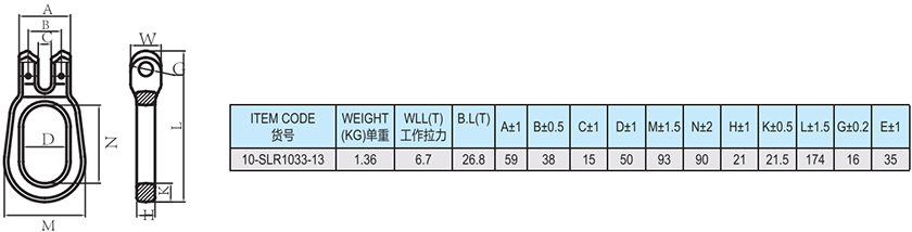 常規(guī)標(biāo)記:13-10  WLL 6.7T  CE  SLR  + BATCH NUMBER(批號)