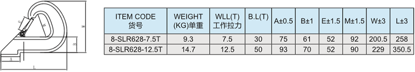 常規(guī)標(biāo)記:WLL7.5T CE SLR + BATCH NUMBER(批號(hào))