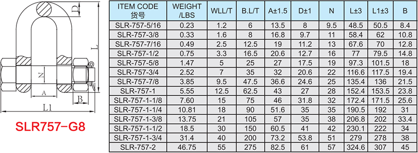 SLR757-8級(jí)螺栓銷合金鋼D型卸扣